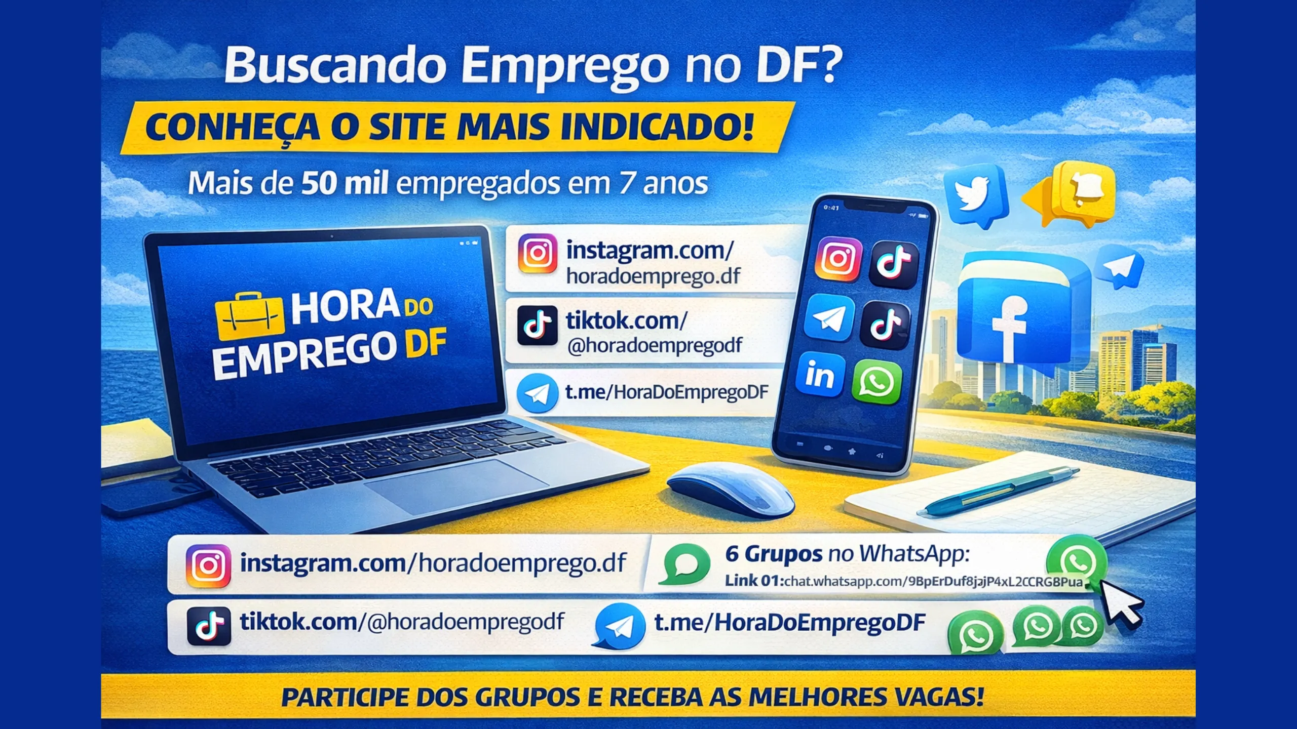 Redes Sociais e Grupos Oficiais do Hora do Emprego DF