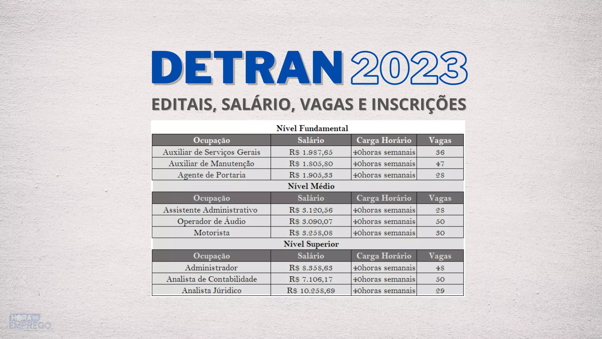 - Cargos: Assistente, Analista, Agente e Examinador de Trânsito, Engenheiro Civil, Analista de Sistemas e Pedagogo