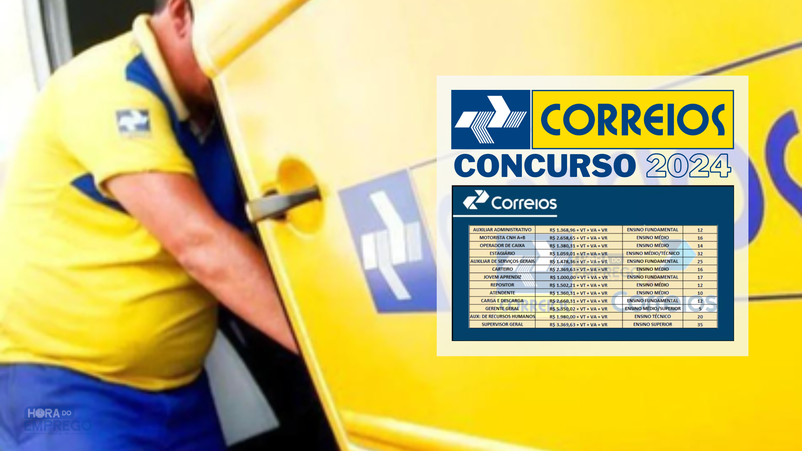 O primeiro edital do concurso Correios já conta com contrato assinado com a banca organizadora, o Instituto Iades. Embora ainda não tenha sido divulgada a quantidade de vagas disponíveis, este certame será voltado para os seguintes cargos: