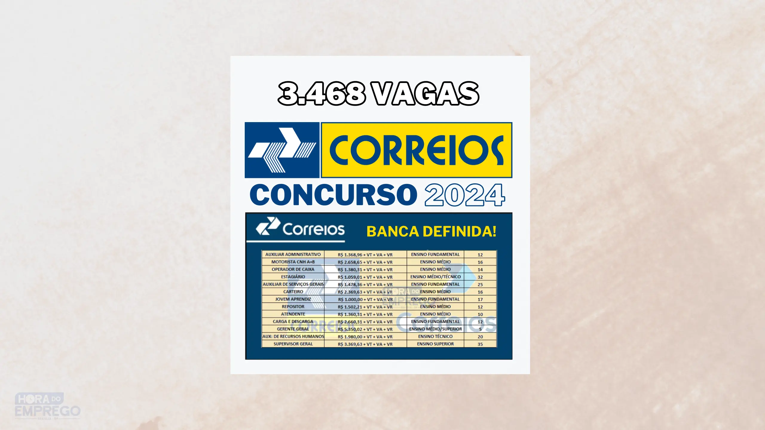 O concurso dos Correios 2024 oferecerá um total de 3.468 vagas, distribuídas entre dois cargos principais: