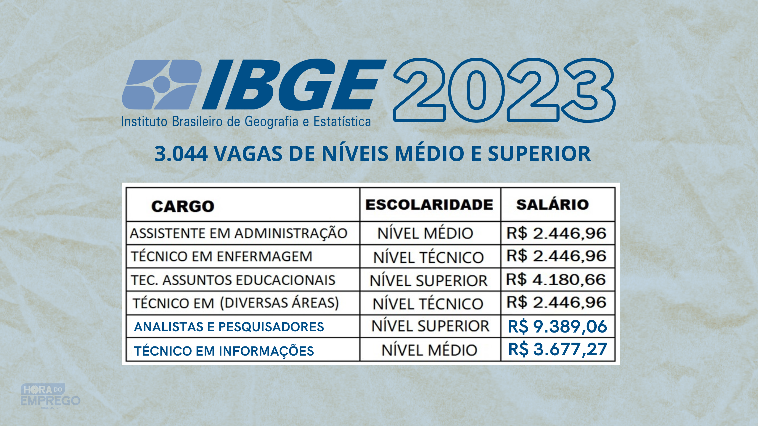 - Tecnologista em Informações Geográficas e Estatísticas: 597 vagas.