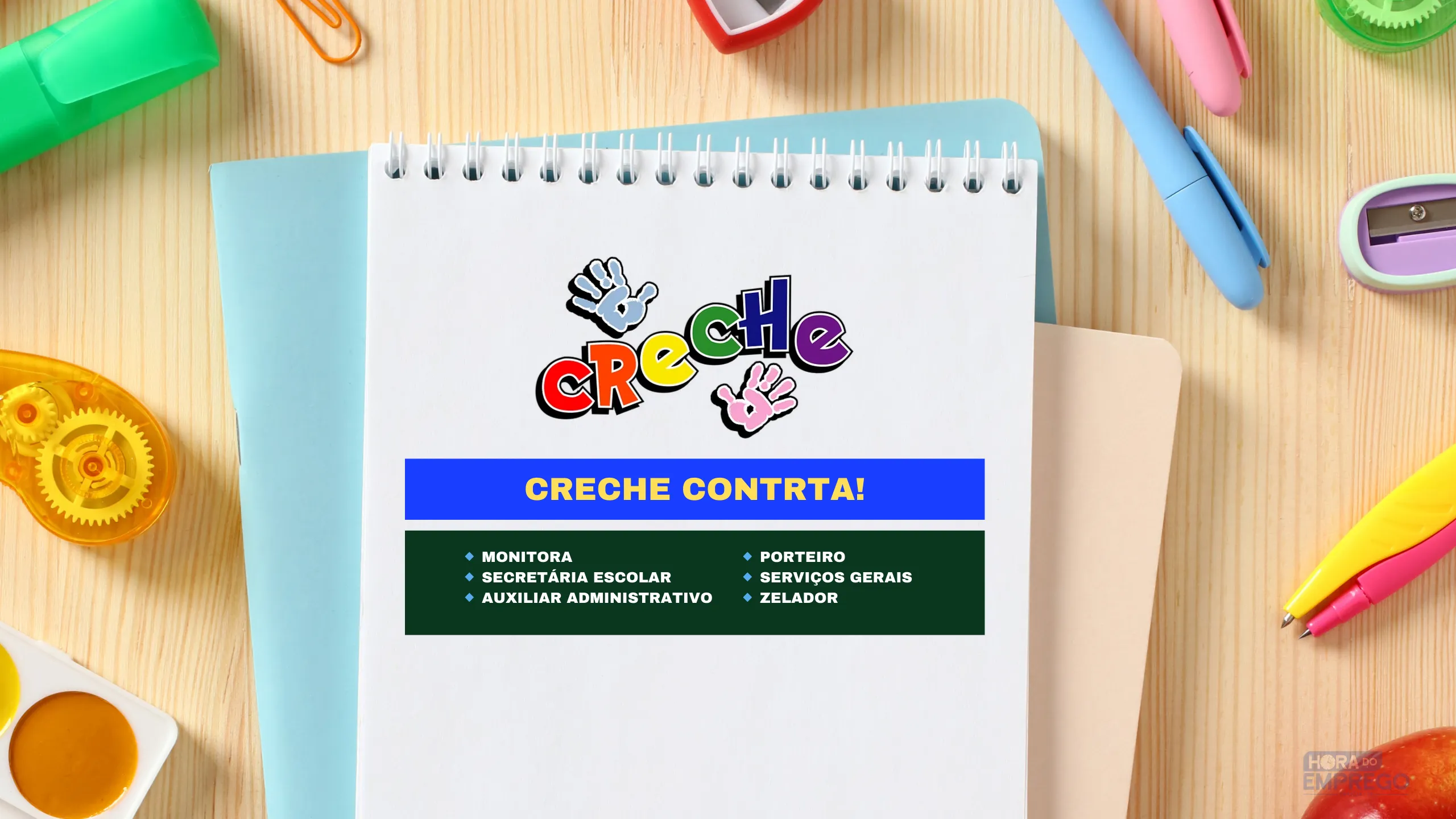A creche está contratando profissionais para diferentes áreas, desde monitoria até serviços administrativos e gerais. Veja as funções abertas: