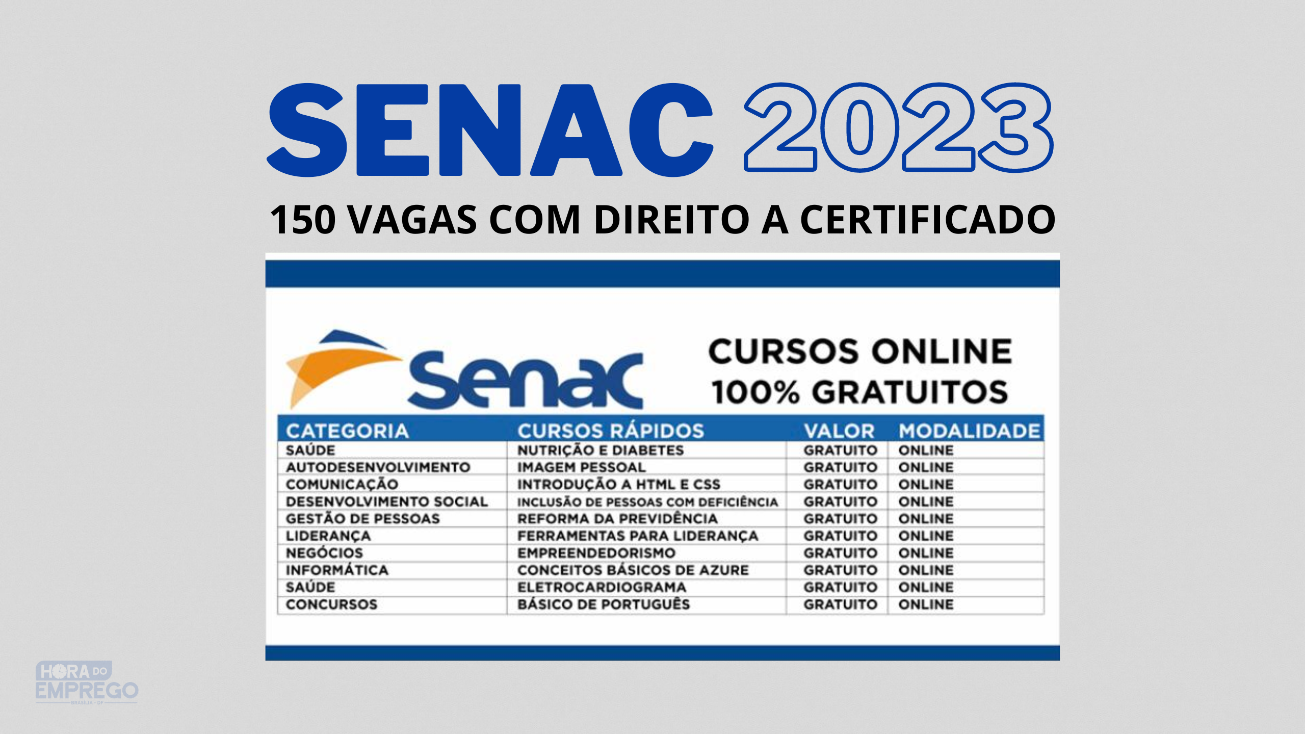 As inscrições podem ser feitas no site: https://www.ead.senac.br/gratuito/