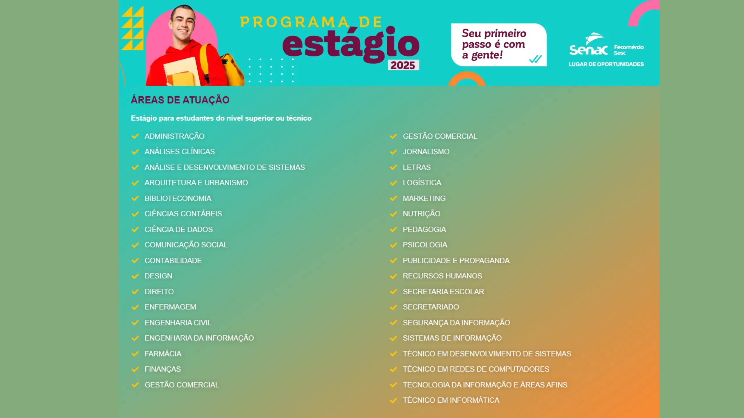 Link de inscrição: 👉 https://www.df.senac.br/programa-de-estagio/