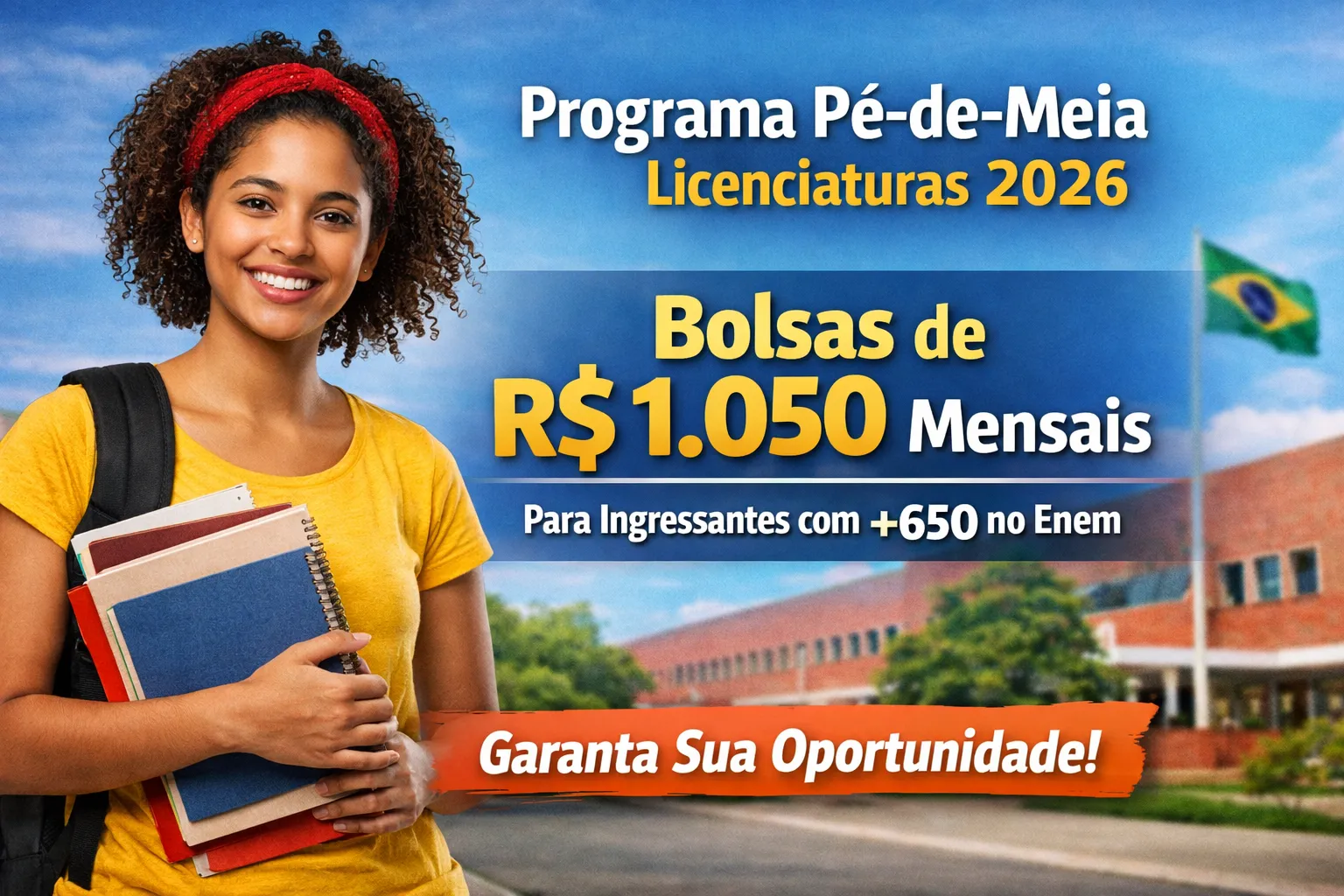R$ 1.050 por mês durante a graduação faz diferença real na vida de qualquer estudante.